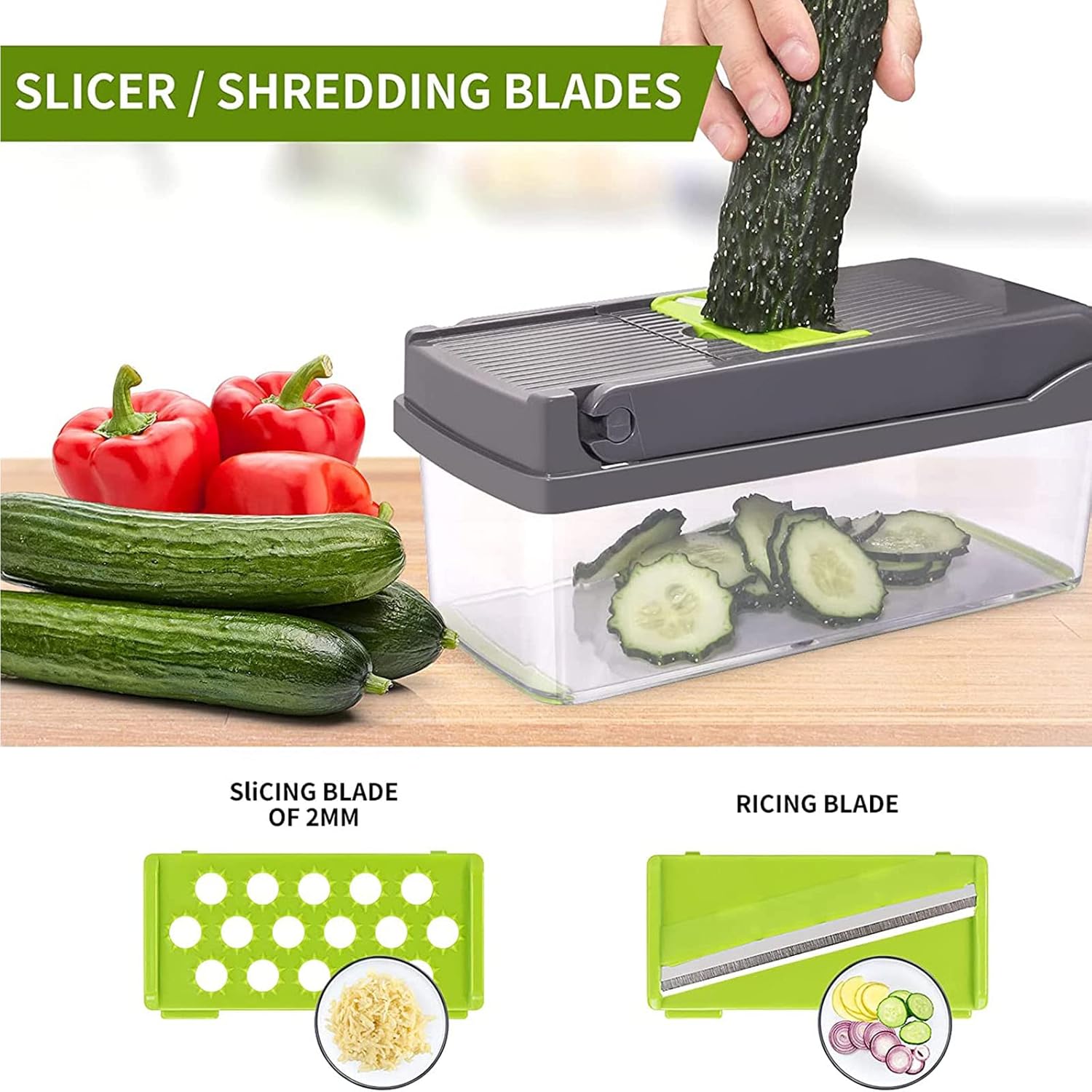 ⚡ Permite cortar en cubos, julianas, rodajas y rallados