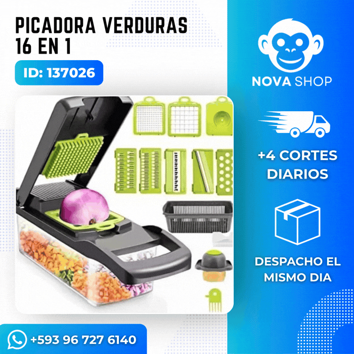Convierte tu cocina en un espacio más práctico y eficiente con esta increíble picadora de verduras 16 en 1. Diseñada para quienes buscan ahorrar tiempo sin sacrificar calidad, esta herramienta multifuncional te permite cortar, rebanar, rallar y mucho más en cuestión de segundos, logrando resultados uniformes como todo un experto.