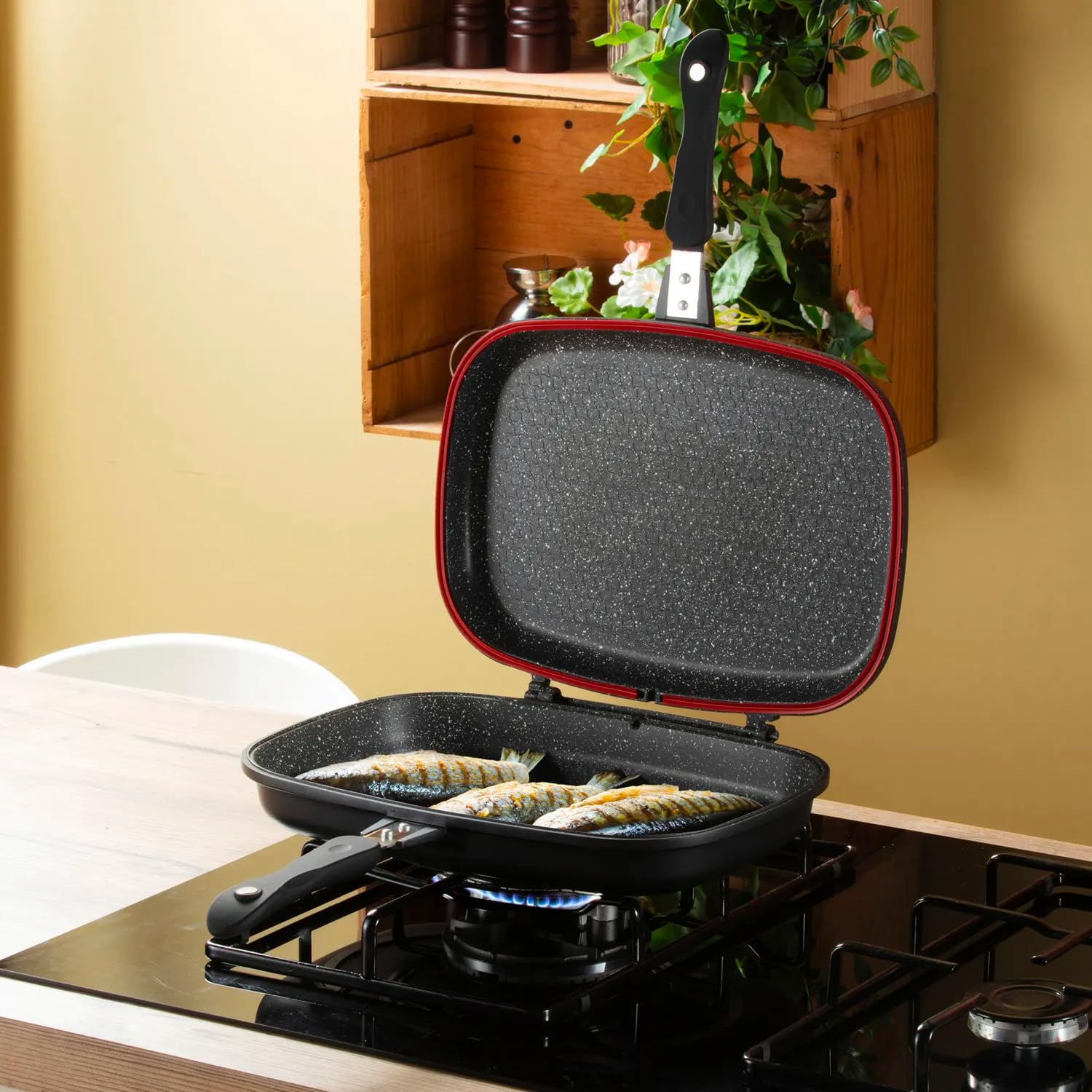 Sartén Doble Grill con Cerradura Magnética 🔥🍳✨